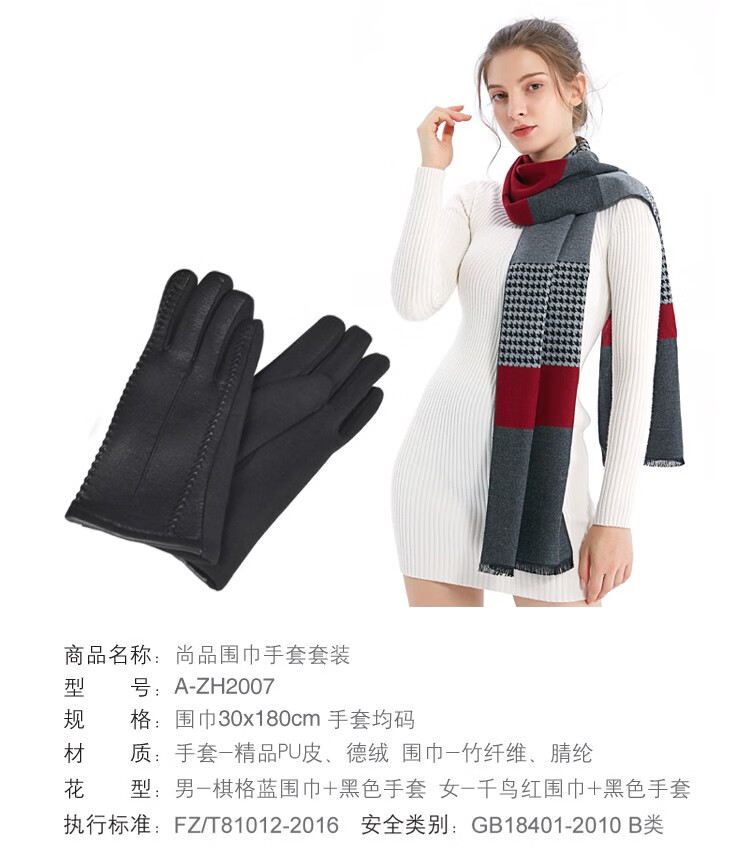 产品材质 :围巾/竹纤维、腈纶 手套/精品PU皮、德绒