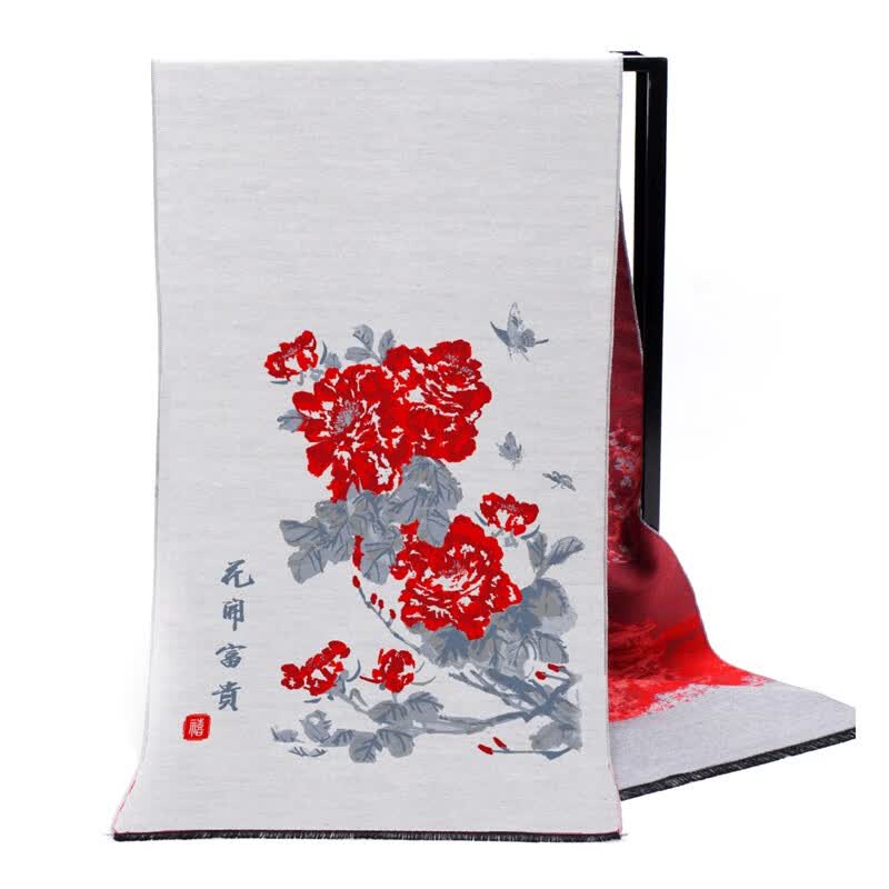 商品名称:艾丝雅兰 A-DZ601-2 主题文化定织围巾披肩 花开富贵 30x180cm