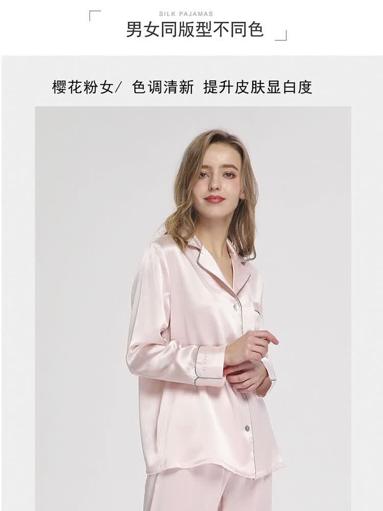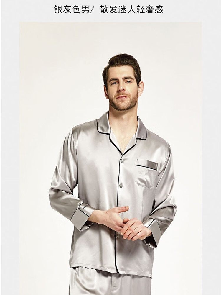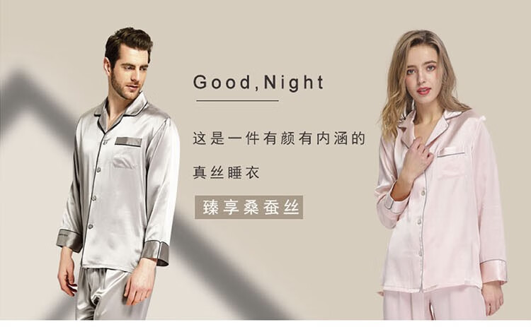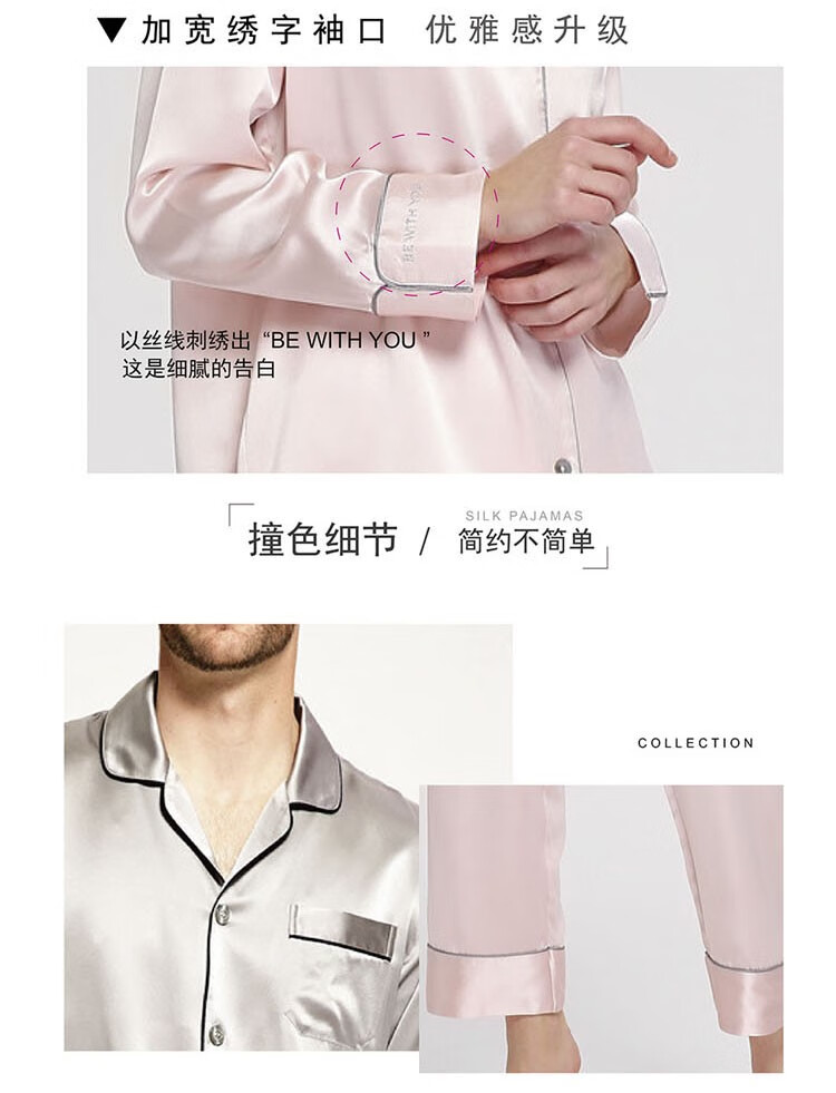 商品名称:艾丝雅兰 A-Y502-1 巴黎风尚桑蚕丝睡衣双人装 银灰色(男)+樱花粉(女)备注型号