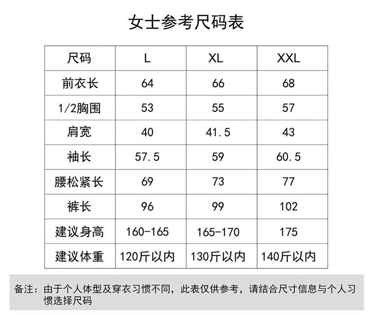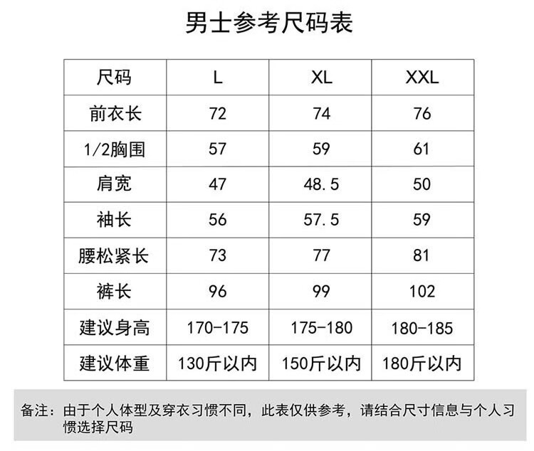 产品规格 :男/L、XL、XXL 女/L、XL、XXL