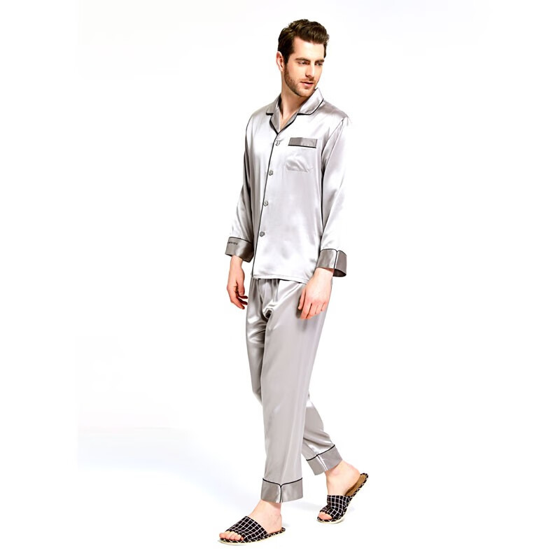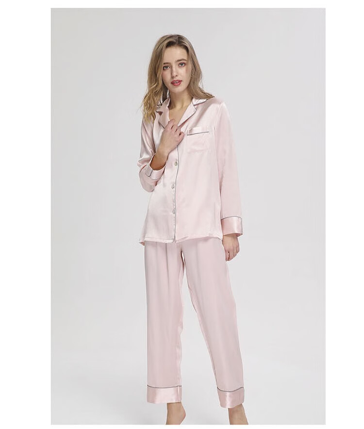 艾丝雅兰 A-Y502-1 巴黎风尚桑蚕丝睡衣双人装 银灰色(男)+樱花粉(女)备注型号