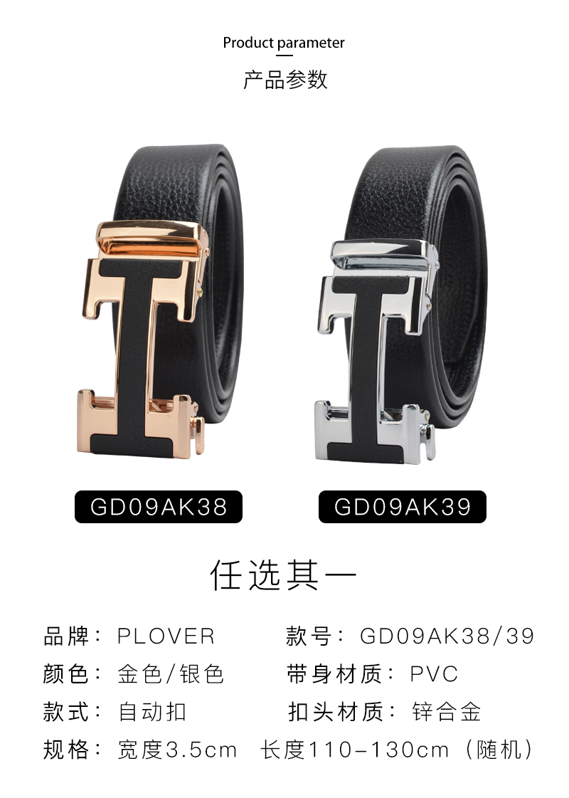 商品名称:啄木鸟 自动扣皮带 GD09AK38-DA(金色)/GD09AK39-DA(银色)