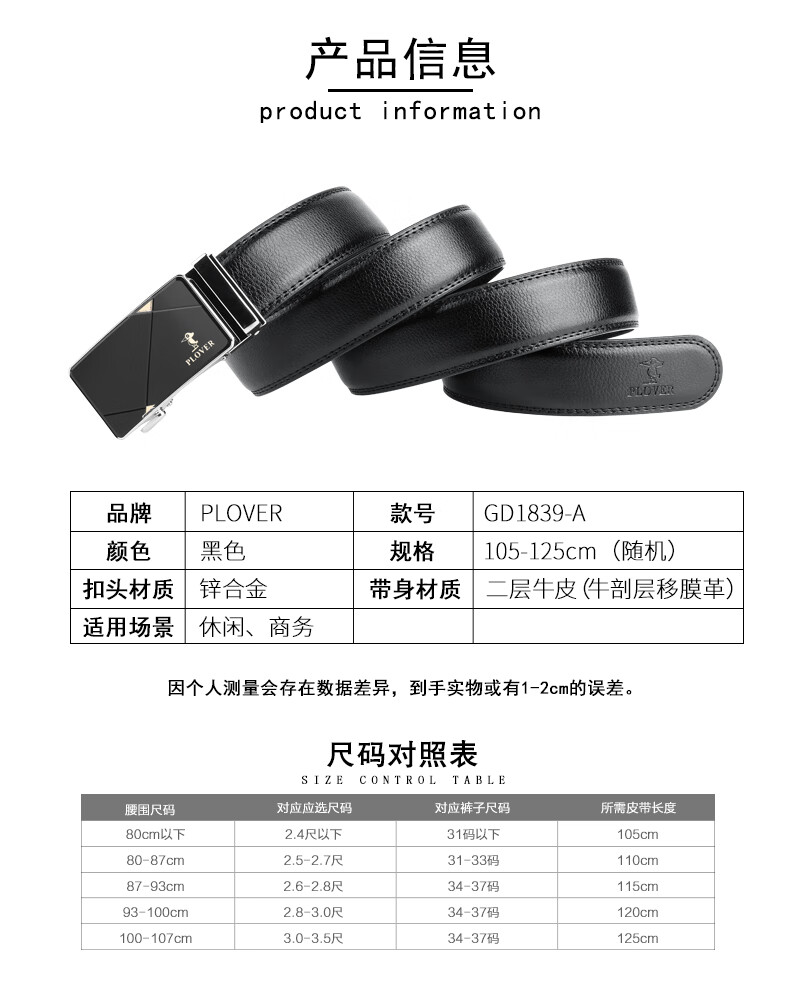 商品名称:啄木鸟 自动扣皮带 GD1839-A