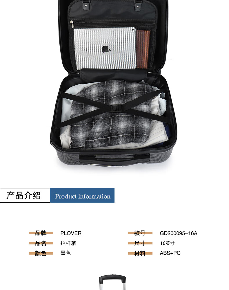 商品名称:啄木鸟 拉杆箱 GD200095-16A 16寸(39*36*24CM)
