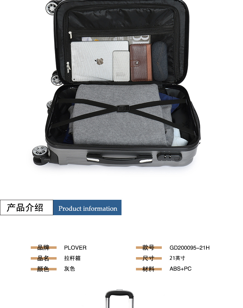 商品名称:啄木鸟 拉杆箱 200095-21H 21寸(59*39*24CM)