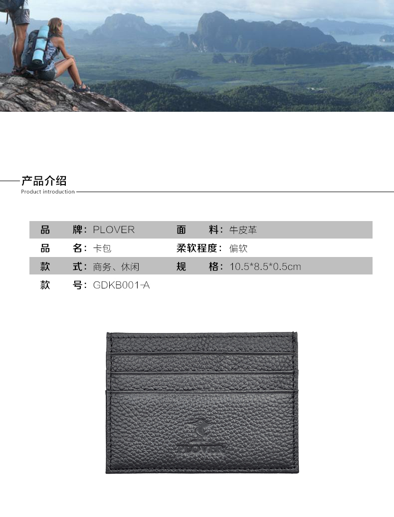 商品名称:啄木鸟 PLOVER 卡片式轻便超薄卡包GDKB001-A 黑色 10.5*8.5CM