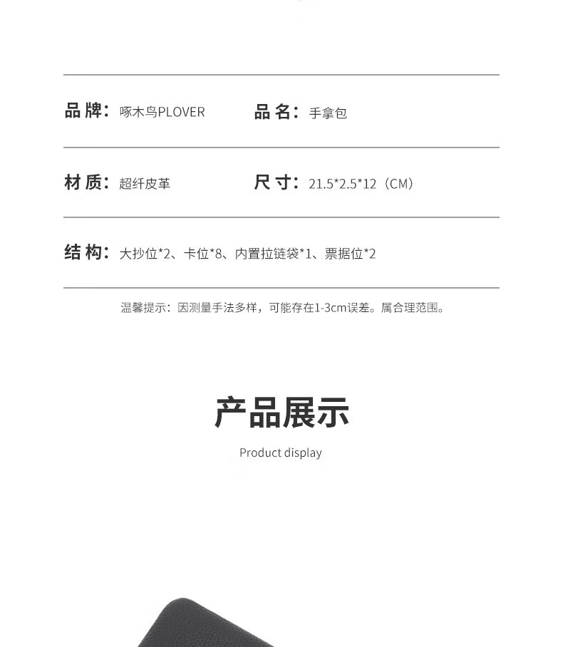 商品名称:啄木鸟 PLOVER男士手拿包钱包大容量手包手抓包GD6928-A 黑色 21.5*2.5*12CM