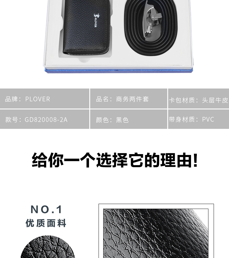 商品名称:啄木鸟 PLOVER商务卡包皮带套装GD820008-2A