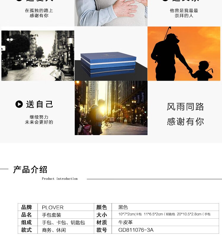 商品名称:啄木鸟 PLOVER商务配套手包、卡包、钥匙包三件套GD811076-3A 黑色