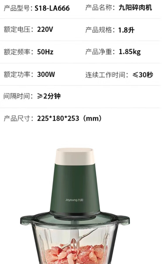 商品名称:九阳(Joyoung)绞肉机 S18-LA666 1.8L