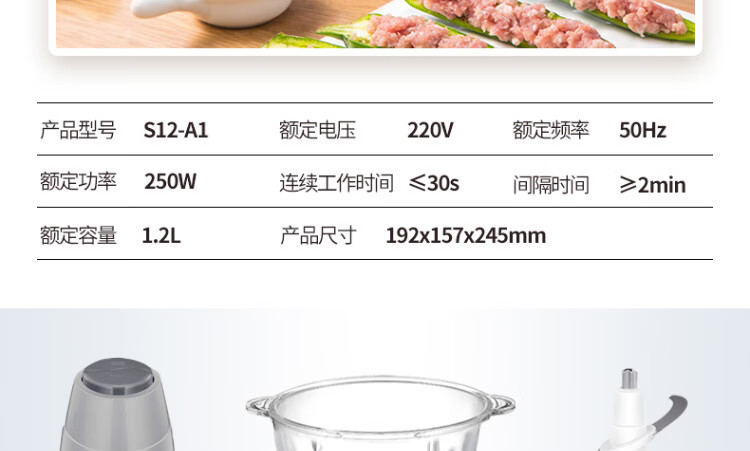 商品名称:九阳(Joyoung)绞肉机 S12-A1 1.2L