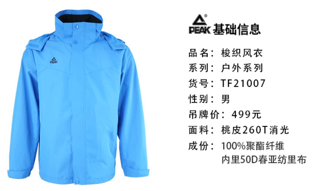商品名称:匹克 户外服装 TF21007 男 梭织风衣