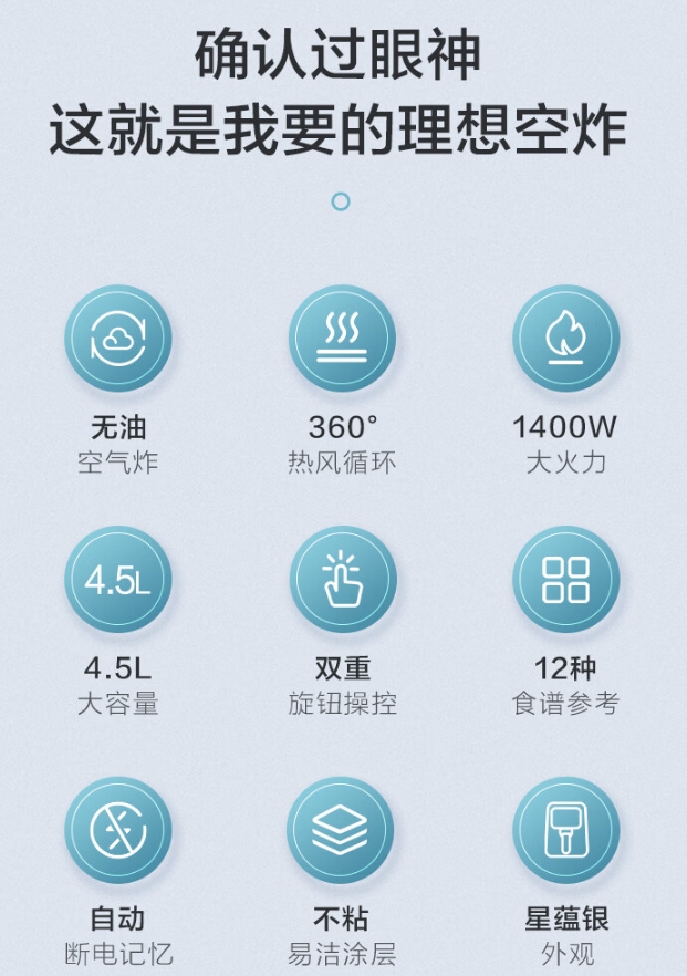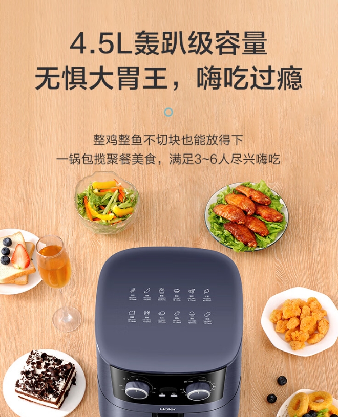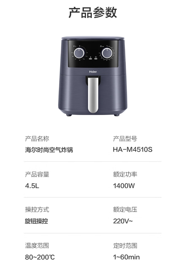 商品名称:海尔 空气炸锅 4.5L 大容量 HA-M4510S