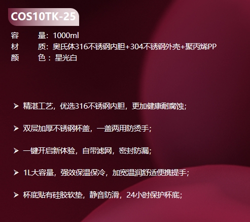 商品名称:COSTA 炫彩大肚杯 COS10TK-25 1L