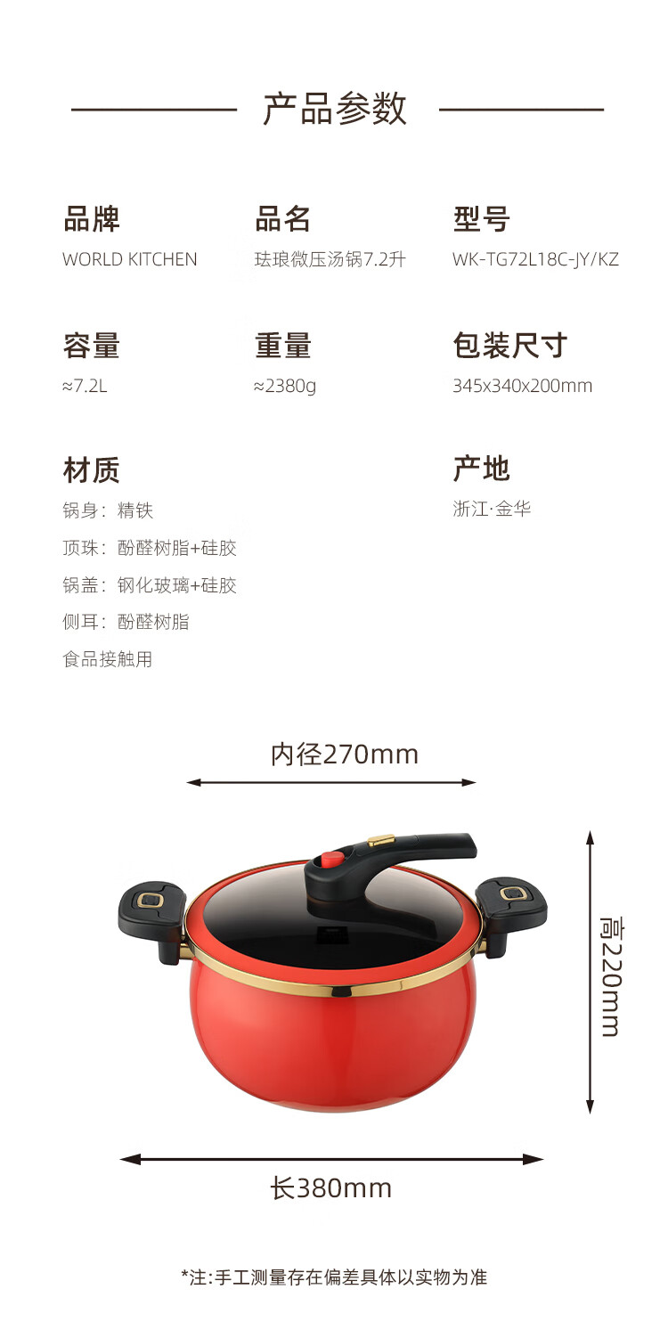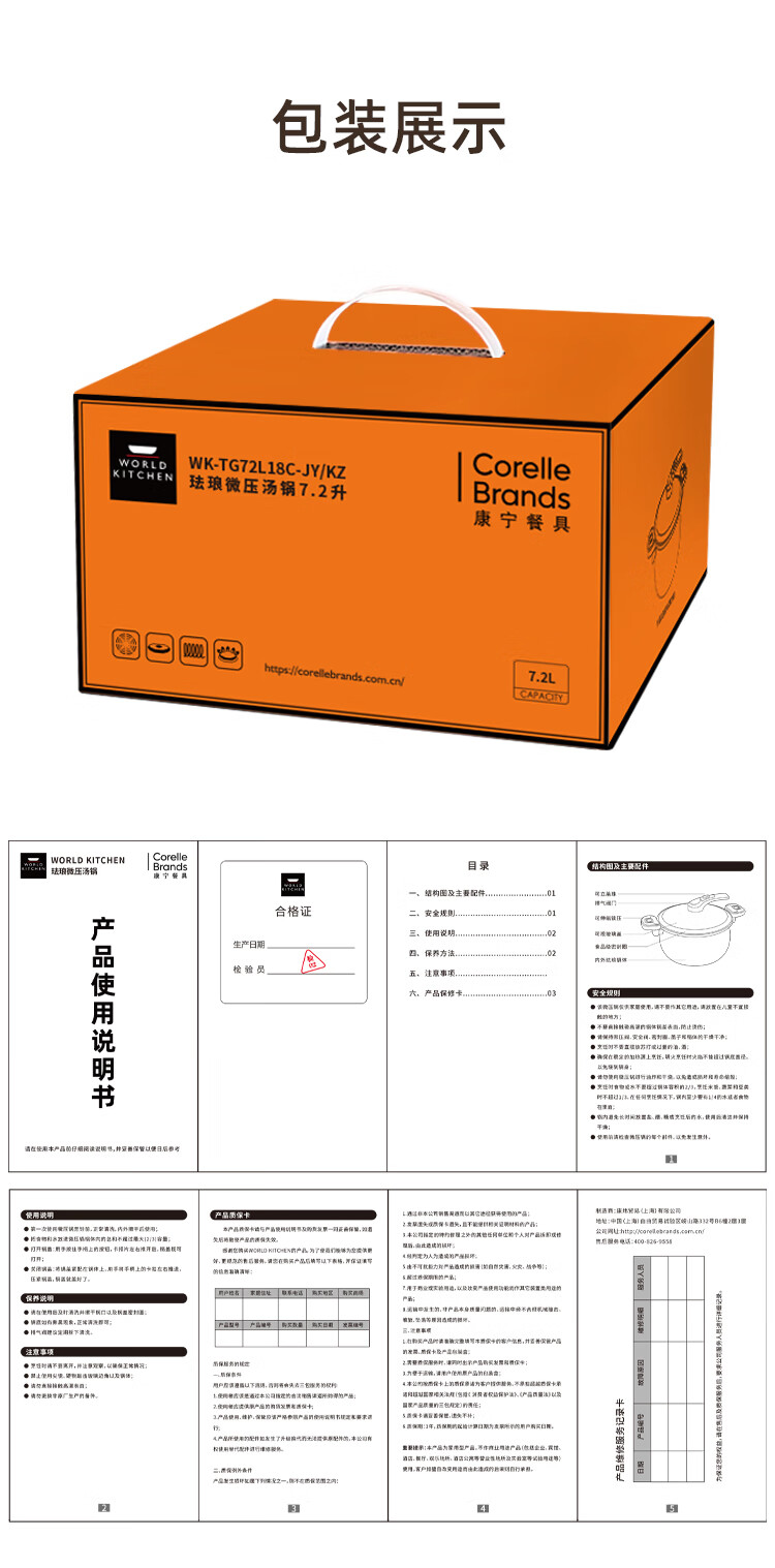 商品名称:康宁 珐琅微压汤锅 7.2升 WK-TG72L18C-JY/KZ