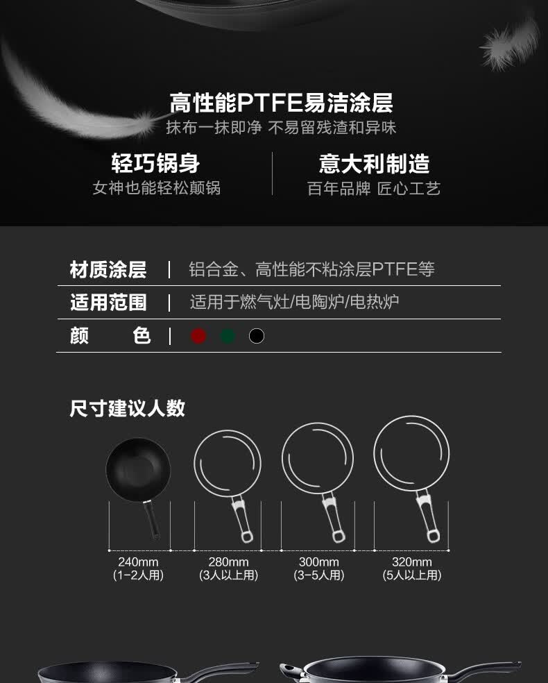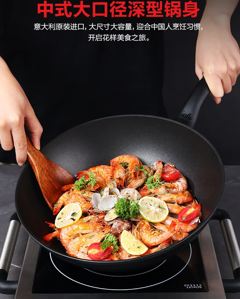 菲仕乐 进口黑骑士30cm深型不粘煎炒锅