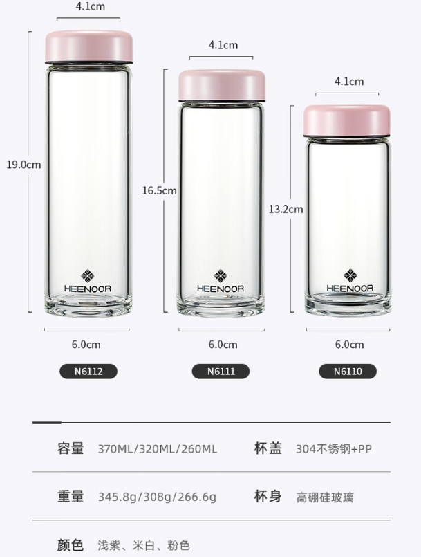 希诺(HEENOOR) 单层玻璃杯 精品N-6112 370ML