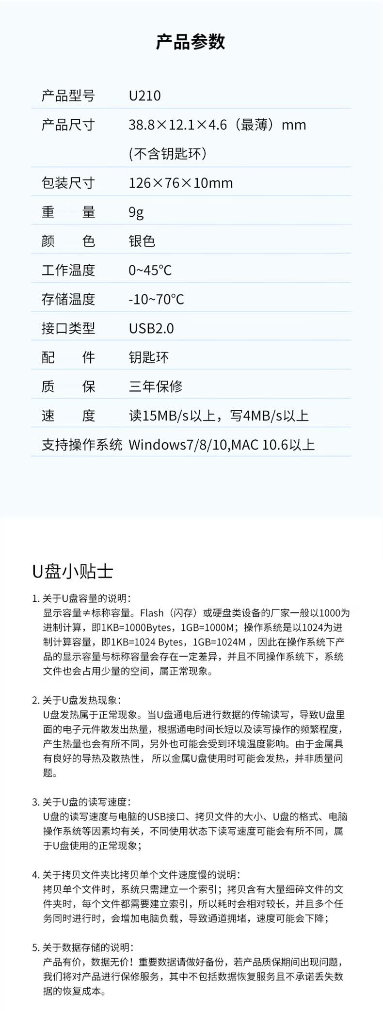 商品名称:爱国者(aigo)8GB USB2.0 U盘 U210