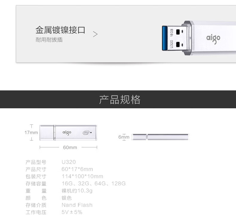 商品名称:爱国者(aigo) USB3.0 U盘 U320 128G