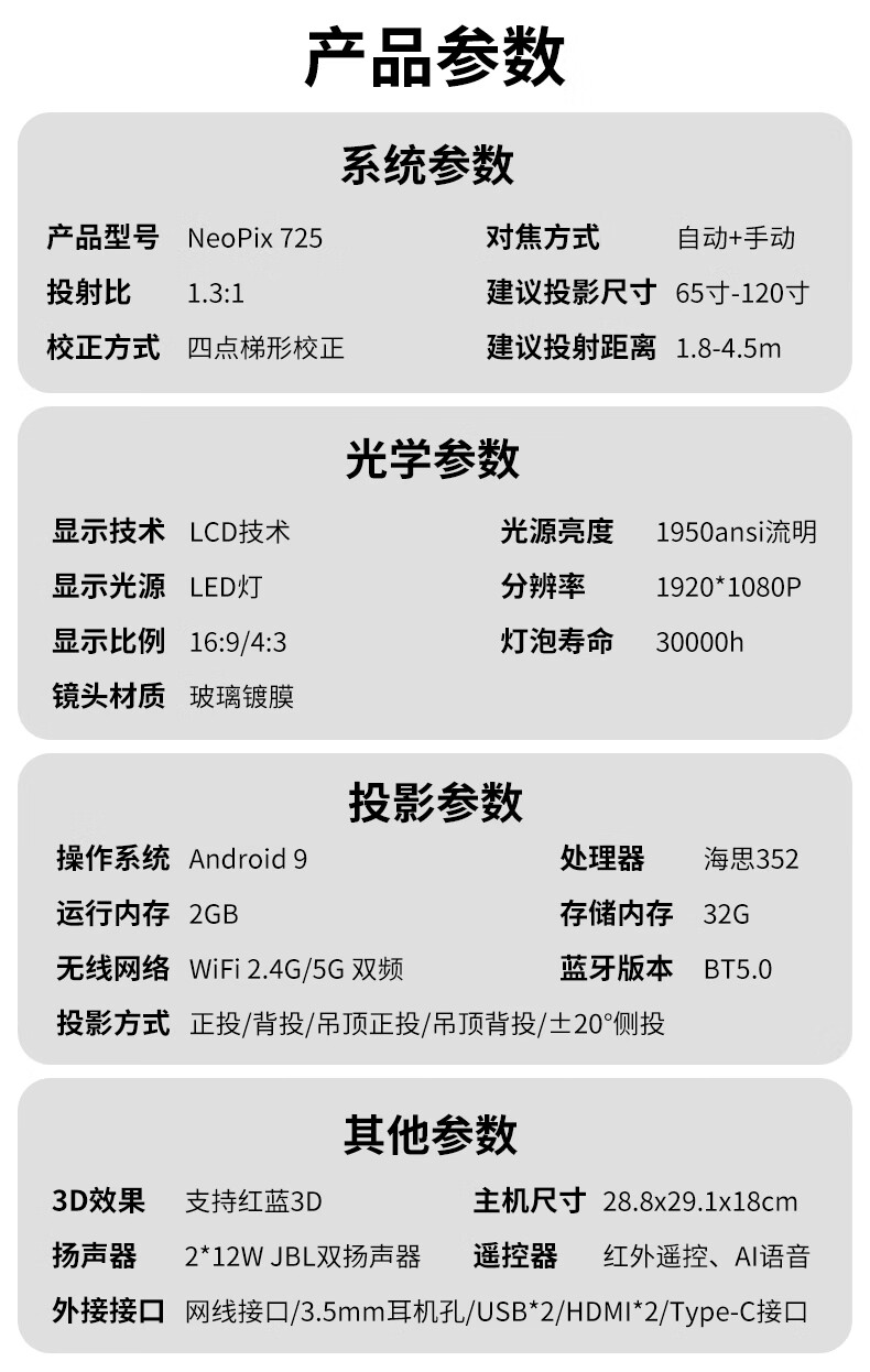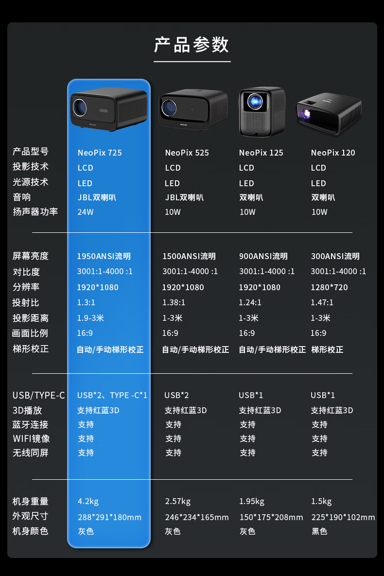 飞利浦(PHILIPS) 投影仪 NeoPix725