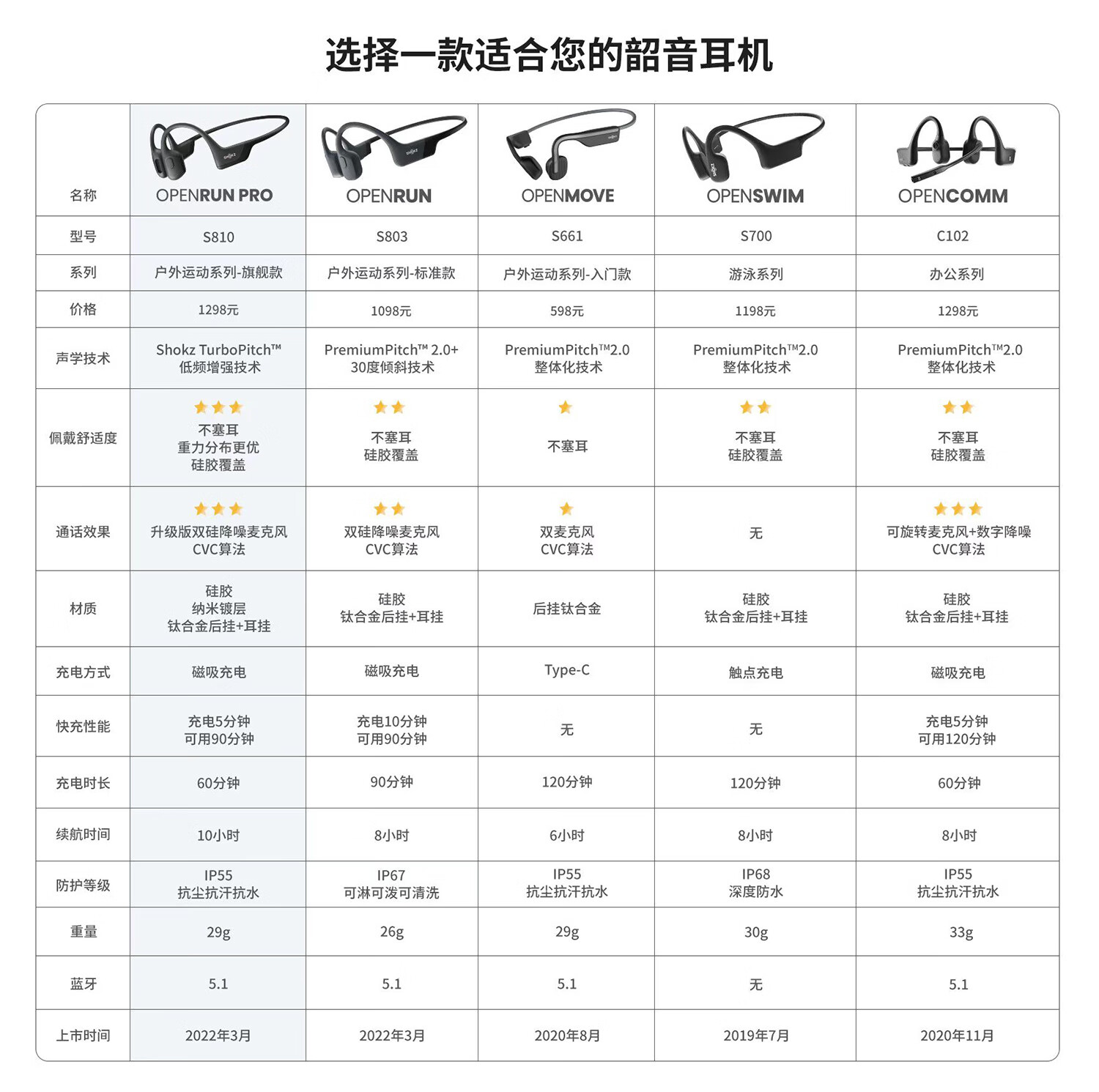 商品名称:韶音(SHOKZ) OpenRun Pro骨传导耳机 S810