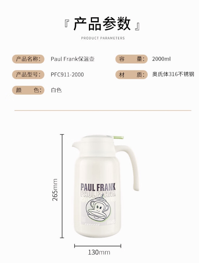 商品名称:大嘴猴 paul frank -- 保温壶 PFC911-2000 2000ML