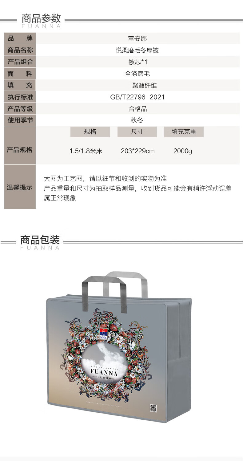商品名称:富安娜(FUANNA) 悦柔磨毛冬厚被 203*229cm(2000g)