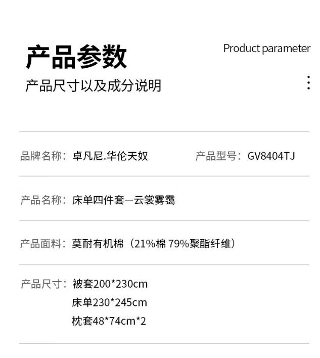 商品名称:卓凡尼·华伦天奴(GIOVANNI VALENTINO) 云裳雾霭-床品四件套 GV8404TJ
