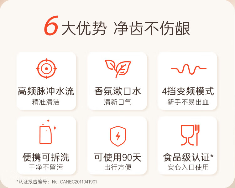 喷头类型 :标准喷头,正畸喷头,舌苔清洁喷头