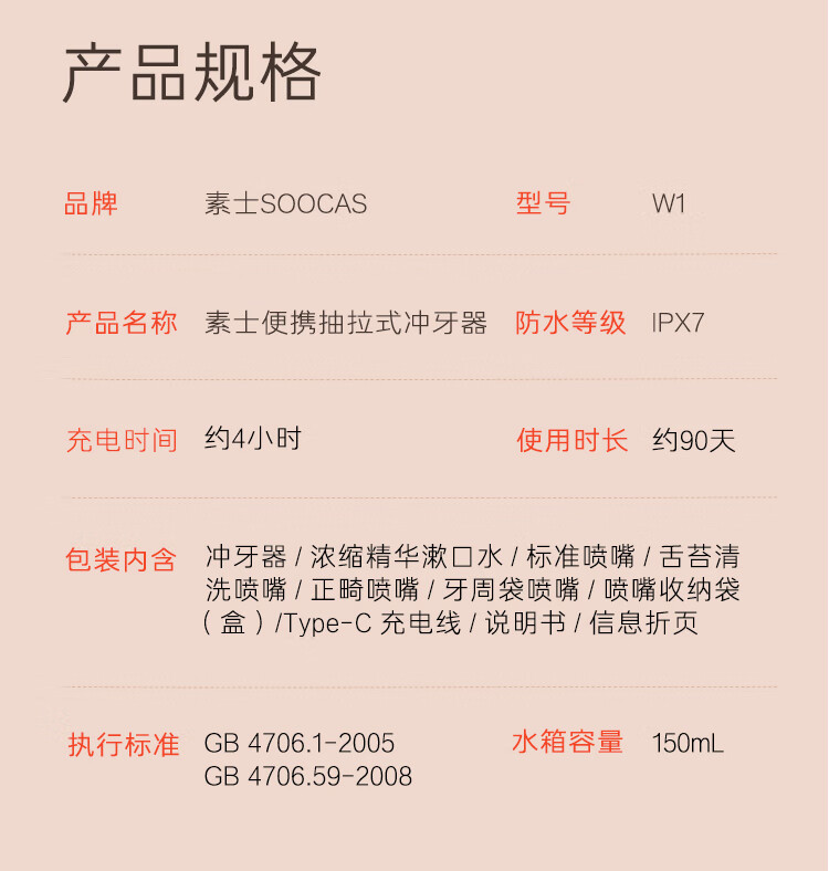 商品名称:素士(SOOCAS)W1 香氛冲牙器