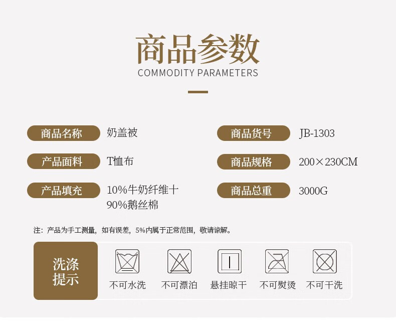 填充物材质 :10%牛奶纤维十90%鹅丝棉