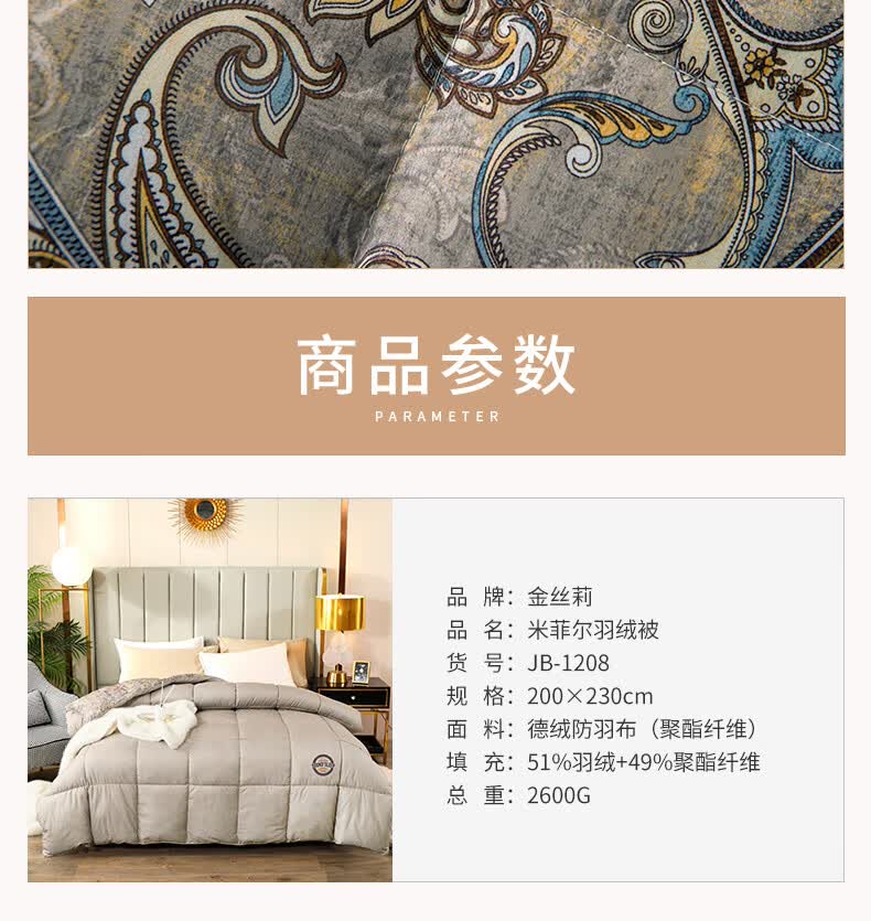 商品名称:金丝莉 KINTHERI 米菲尔羽绒被 JB-1208 200×230cm