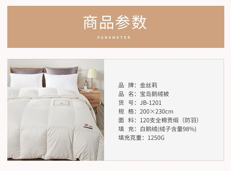 商品名称:金丝莉(KINTHERI) 宝岛鹅绒被JB-1201 JB-1201 200x230cm