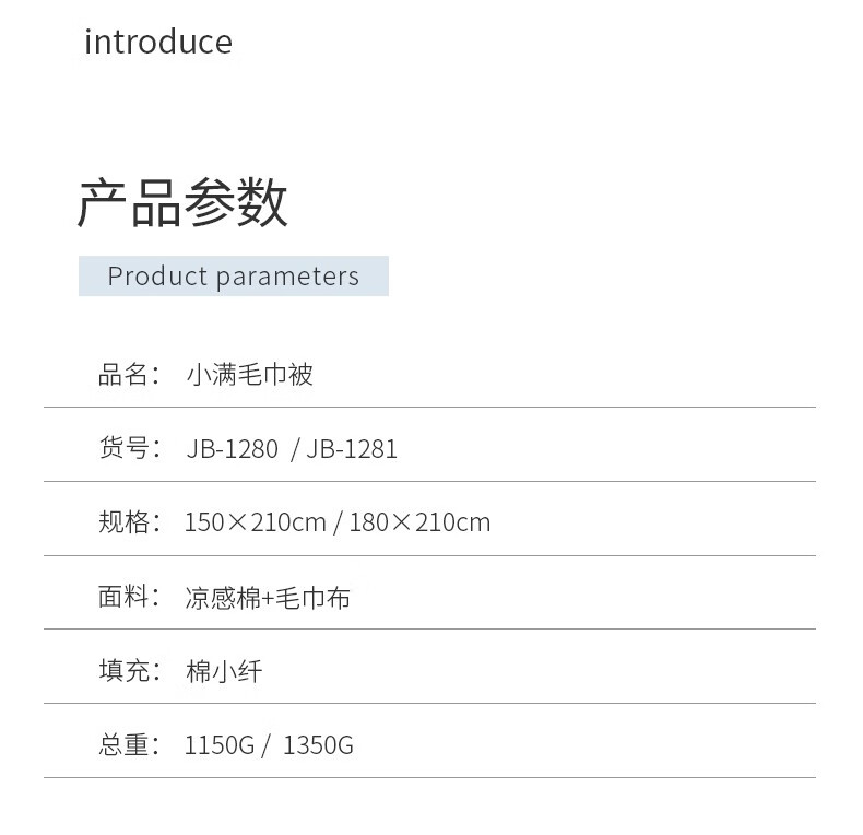 商品名称:金丝莉(KINTHERI)小满毛巾被 JB-1280 150×210cm