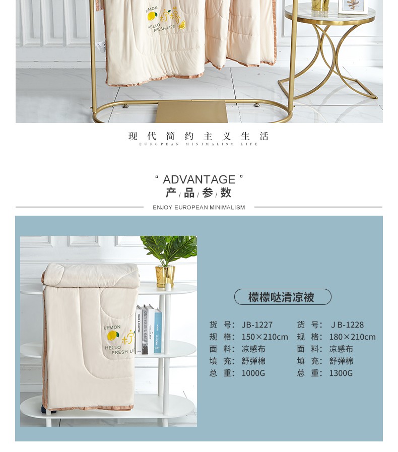 商品名称:金丝莉 檬檬哒清凉被 JB-1227 150×210cm