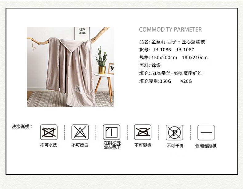 商品名称:金丝莉 西子·匠心蚕丝被 JB-1087 180×210cm