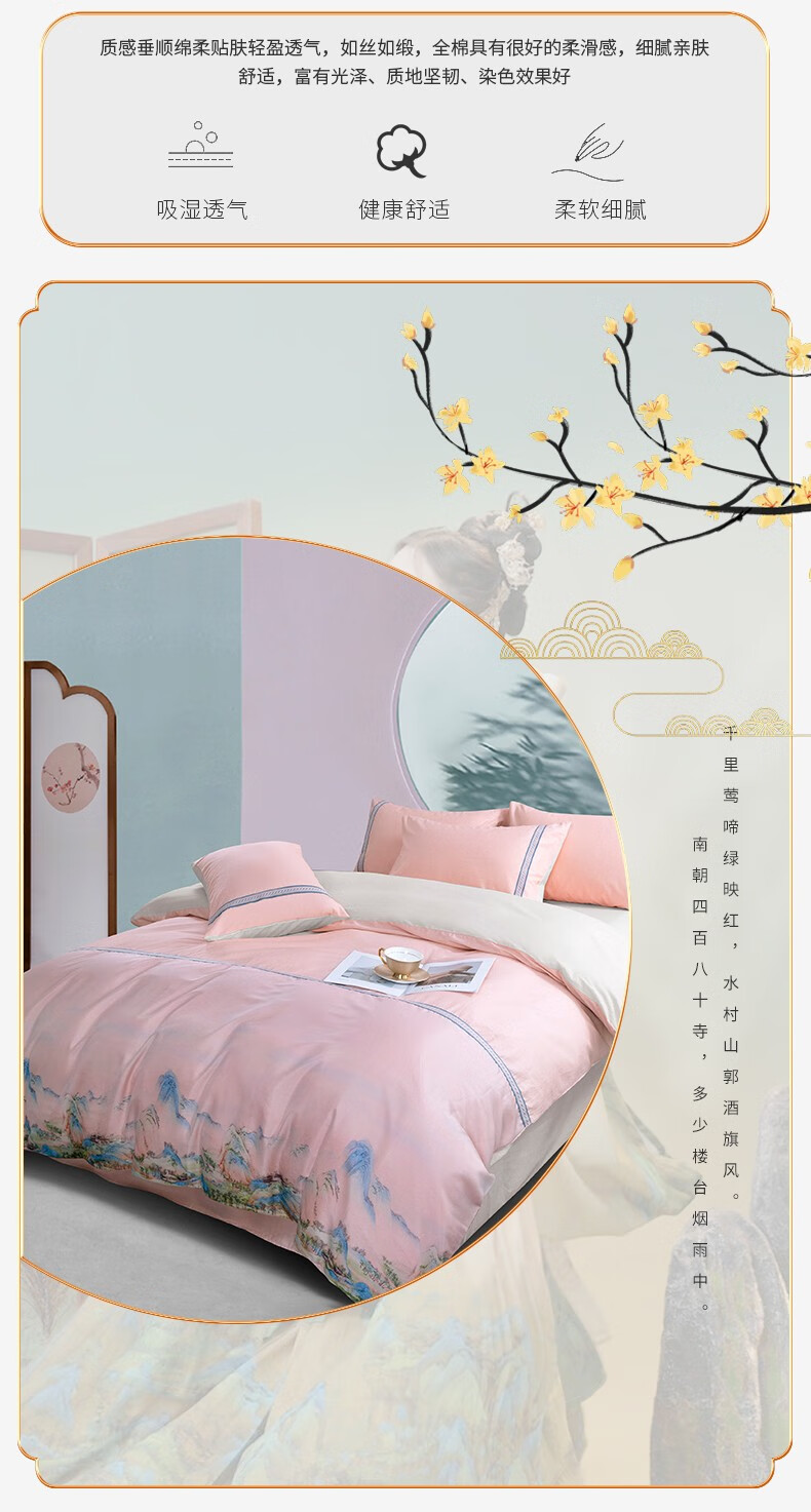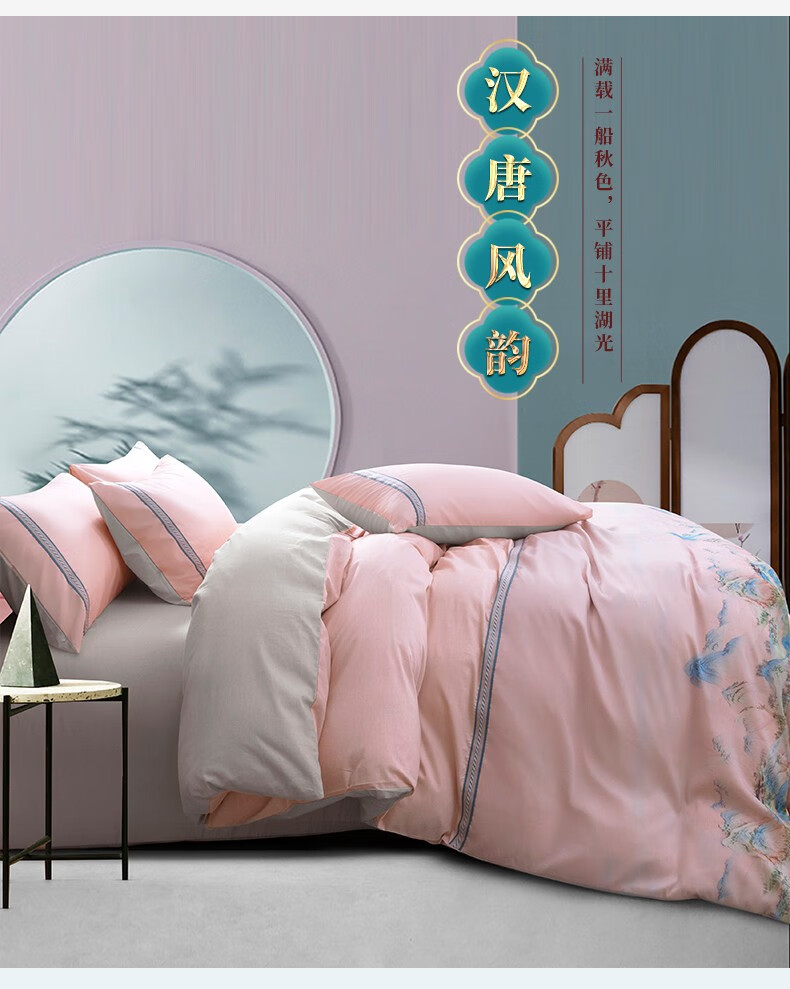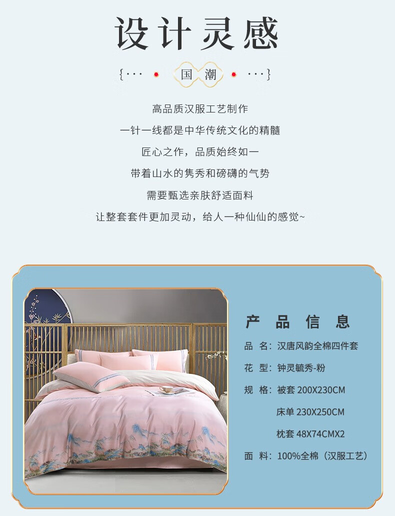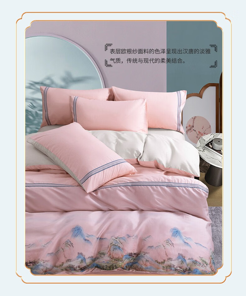 商品名称:金丝莉 汉唐风韵全棉四件套 钟灵毓秀-粉 被套200x230cm