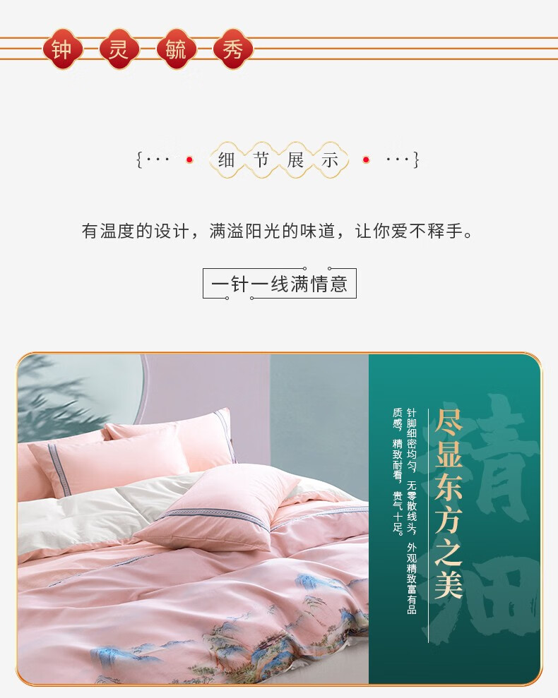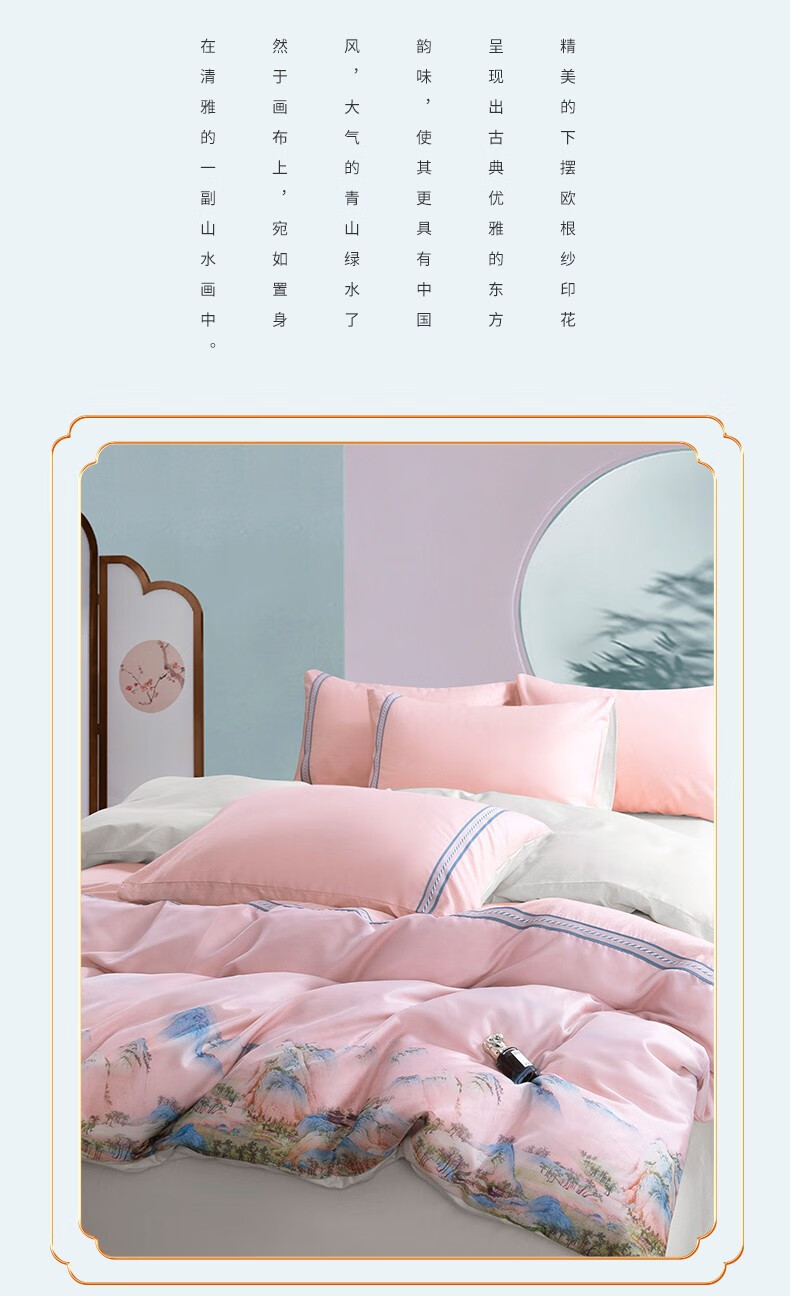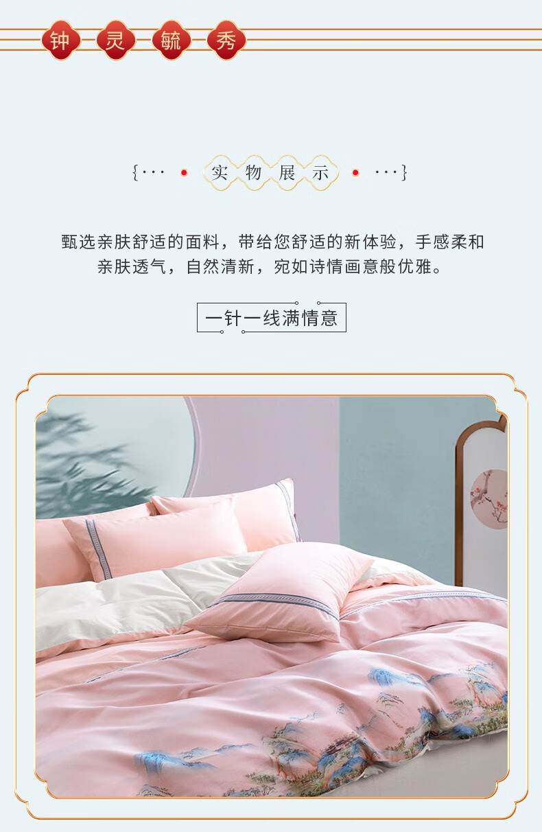 商品名称:金丝莉 汉唐风韵全棉四件套 钟灵毓秀-粉 被套200x230cm