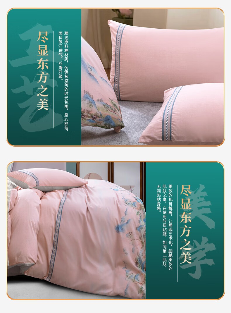 金丝莉 汉唐风韵全棉四件套 钟灵毓秀-粉 被套200x230cm