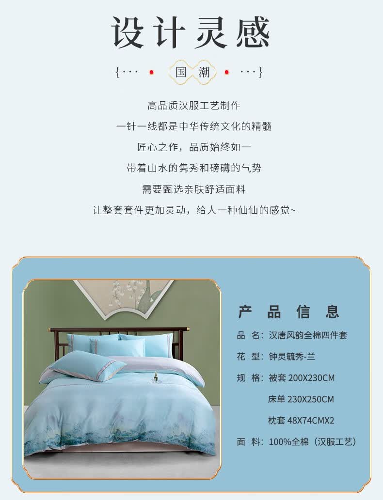 商品名称:金丝莉 汉唐风韵全棉四件套 钟灵毓秀-兰 被套200x230cm