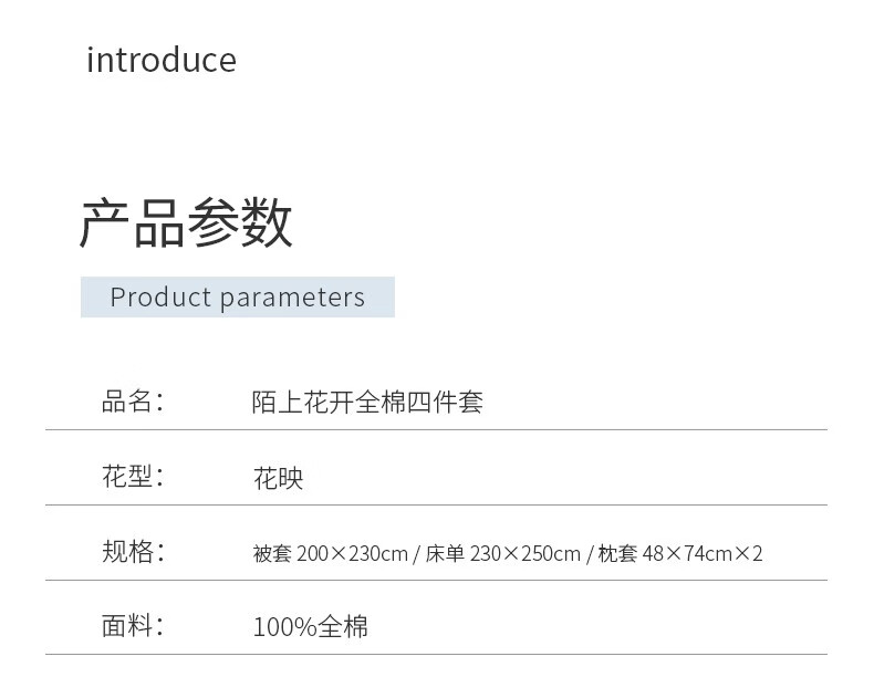 商品名称:金丝莉(KINTHERI)陌上花开全棉四件套花映 床上四件套 花映 被套200x230cm