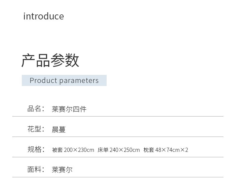 商品名称:金丝莉(KINTHERI)莱赛尔四件套晨蔓 床上四件套 晨蔓 被套200x230cm