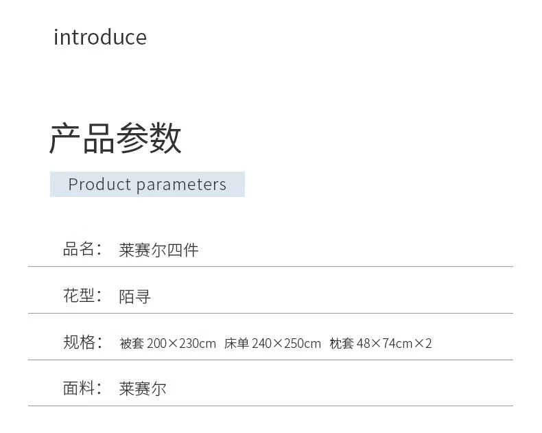 商品名称:金丝莉(KINTHERI)莱赛尔四件套陌寻 床上四件套 陌寻 被套200x230cm