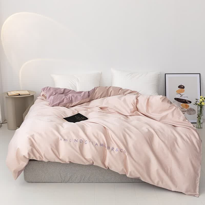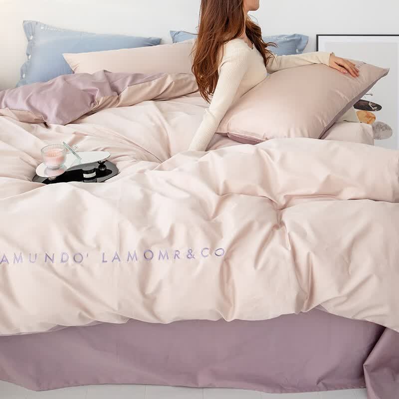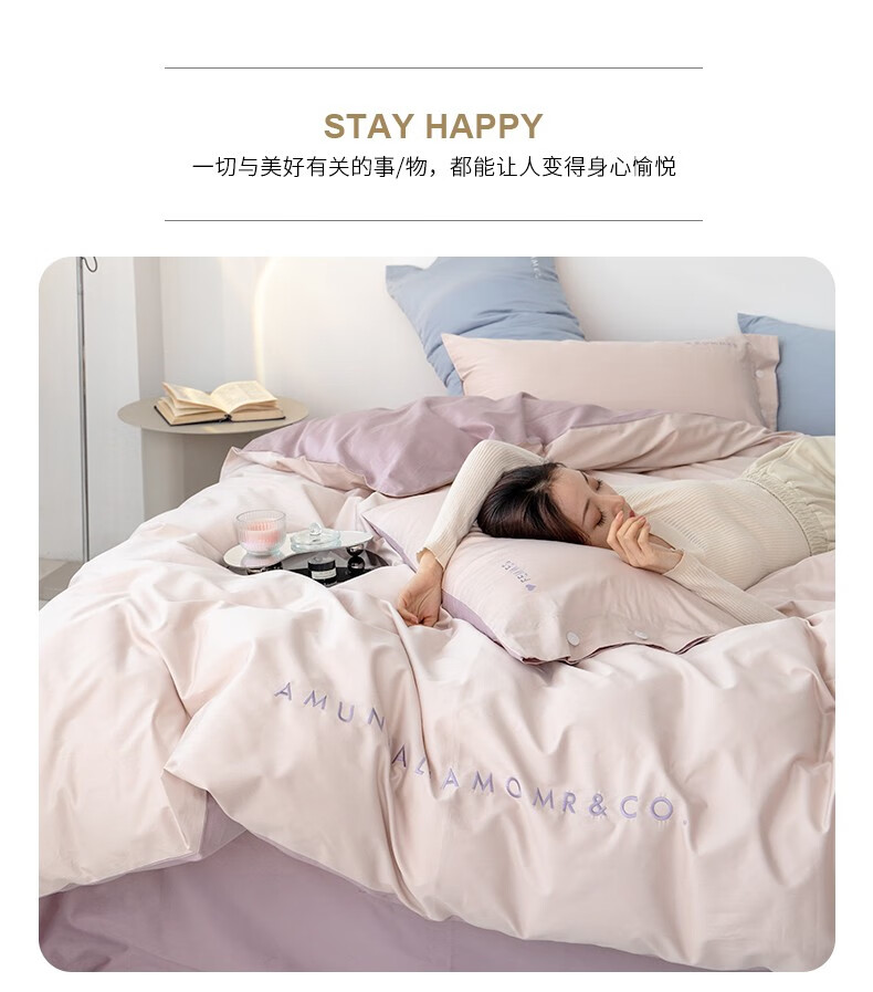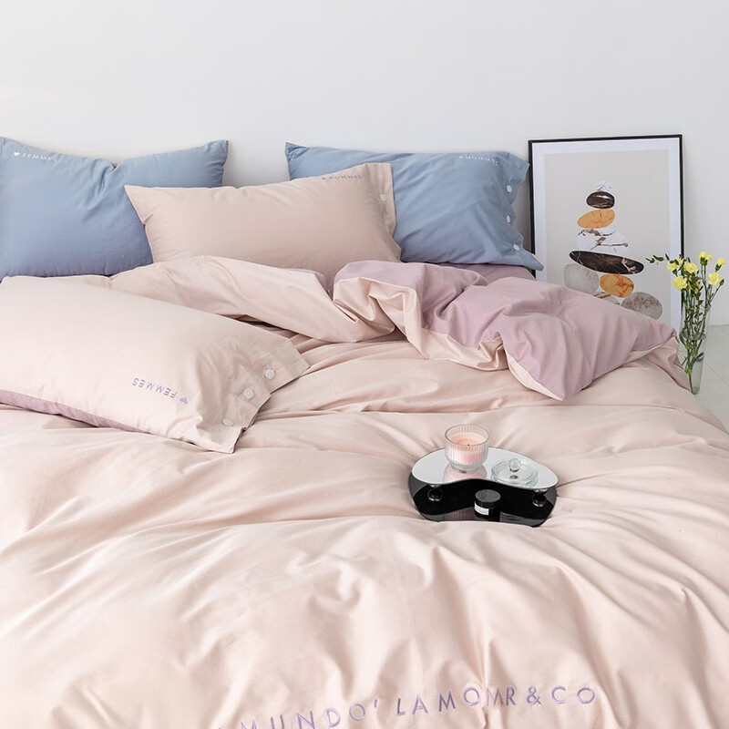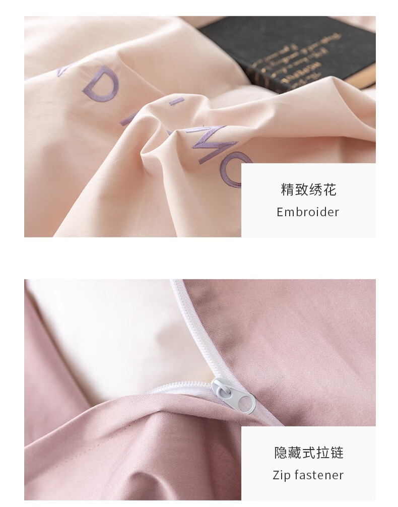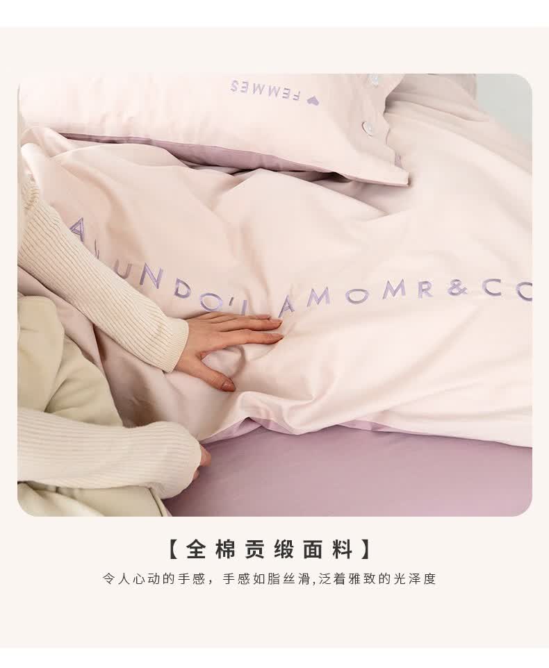 金丝莉(KINTHERI)100支全棉贡缎绣花四件套 轻奢-粉 被套200x230cm