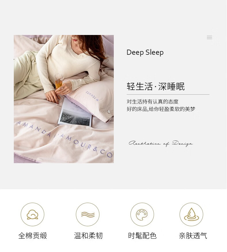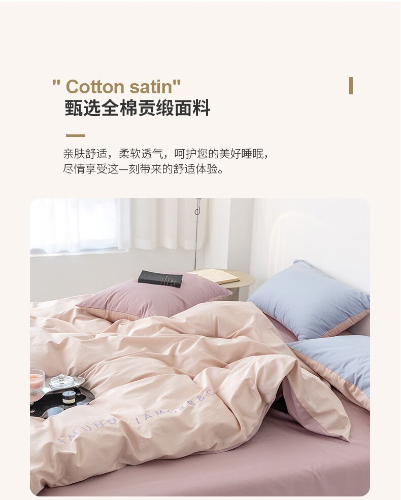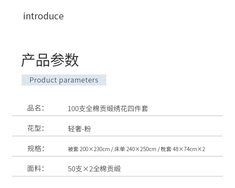 商品名称:金丝莉(KINTHERI)100支全棉贡缎绣花四件套 轻奢-粉 被套200x230cm
