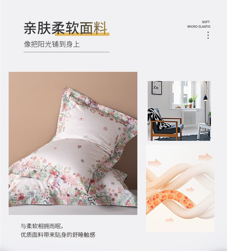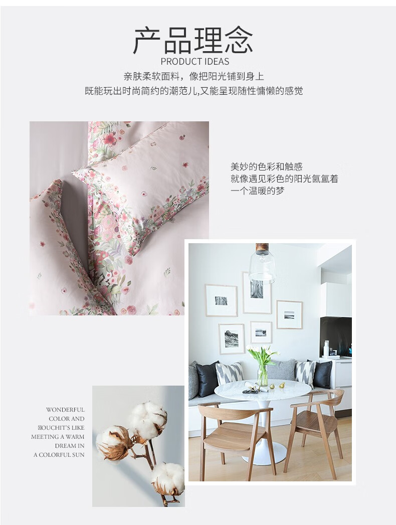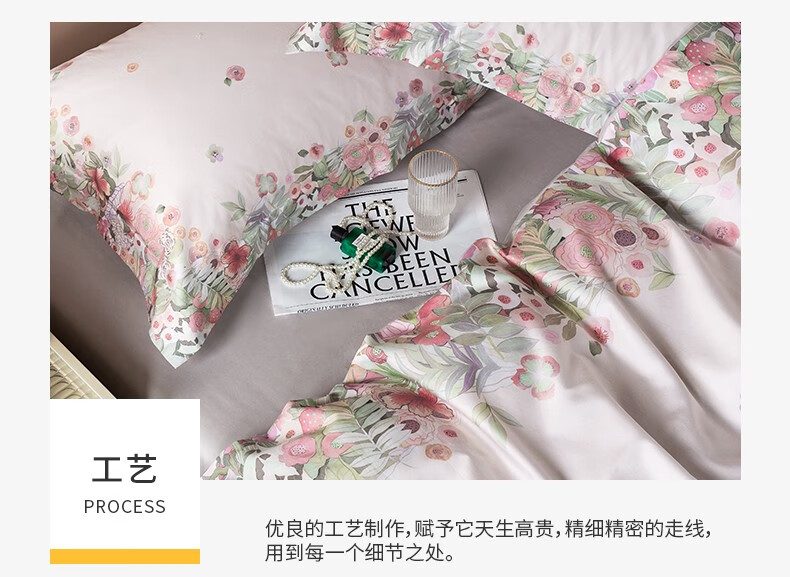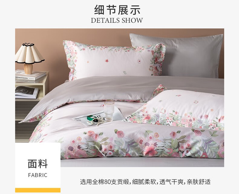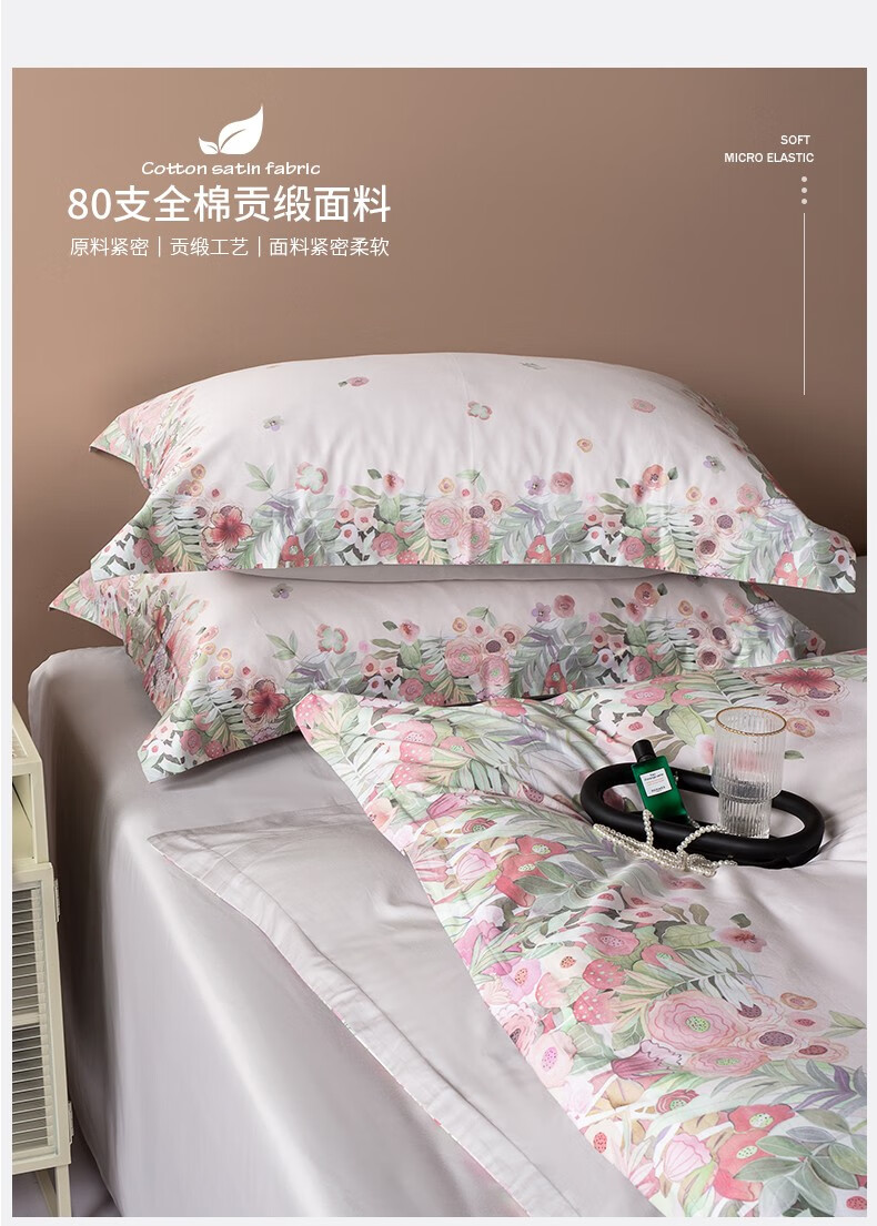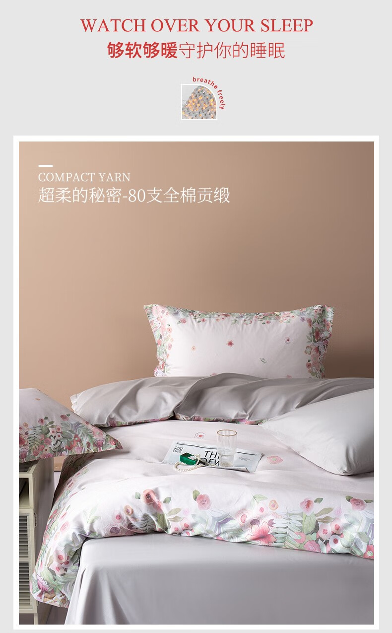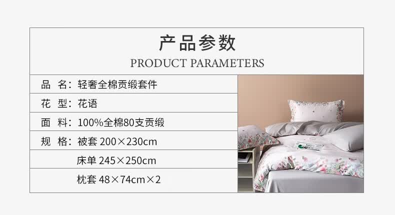 商品名称:金丝莉(KINTHERI) 轻奢全棉贡缎套件 花语 200×230cm