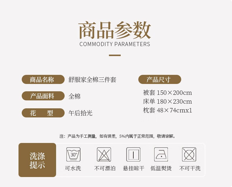 商品名称:金丝莉 舒服家全棉三件套 午后拾光 被套150x200cm
