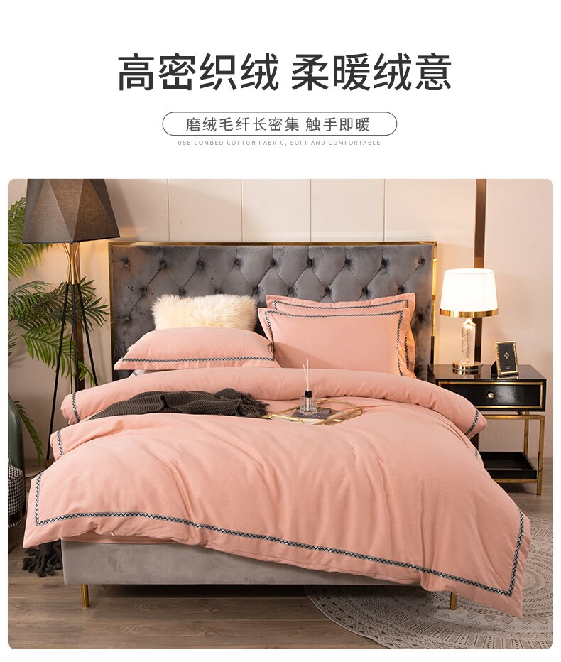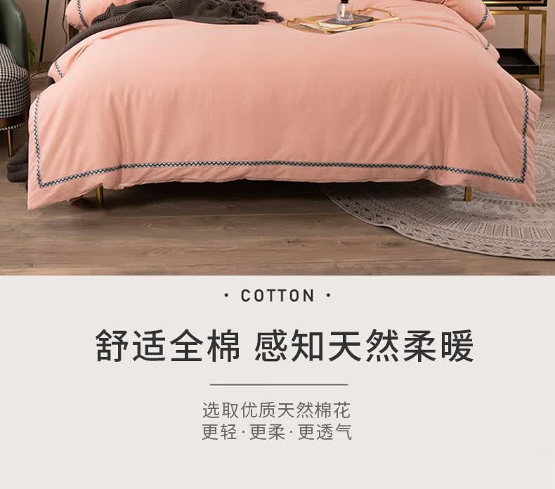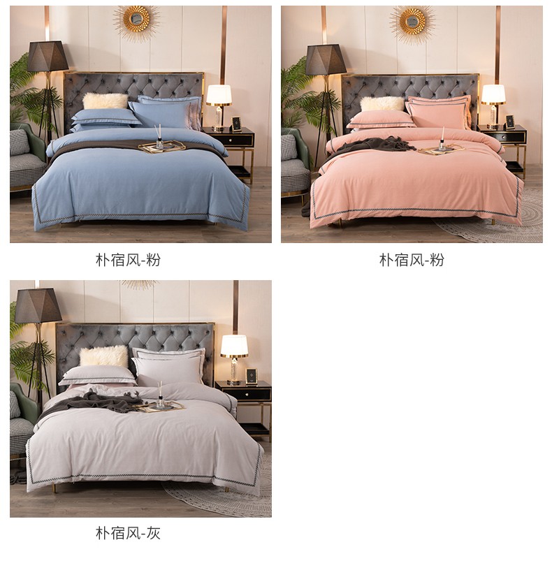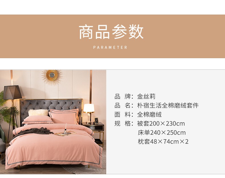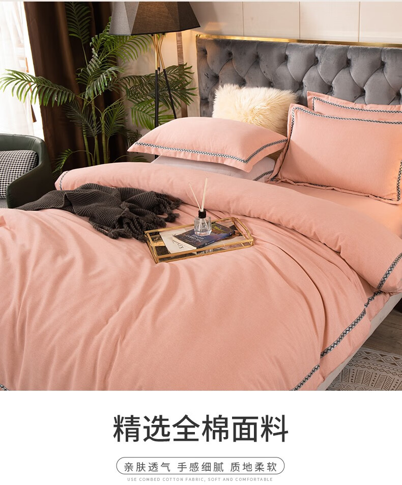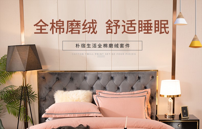 商品名称:金丝莉 朴宿生活全棉磨绒四件套 朴宿风-粉/朴宿风-蓝/朴宿风-灰 被套200×230cm