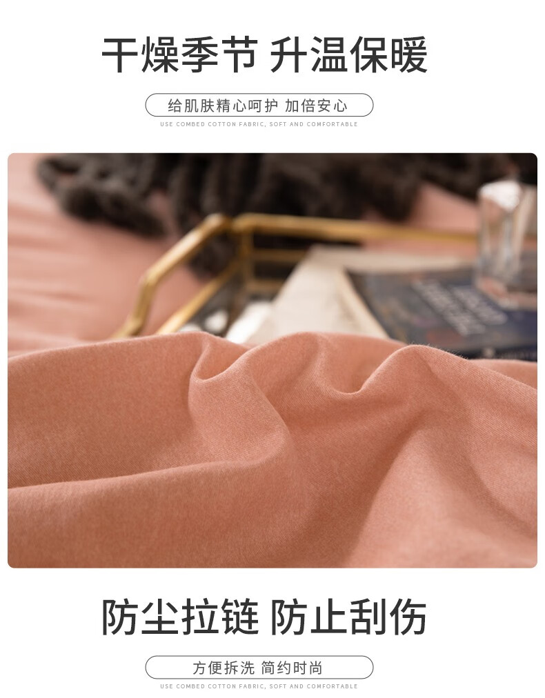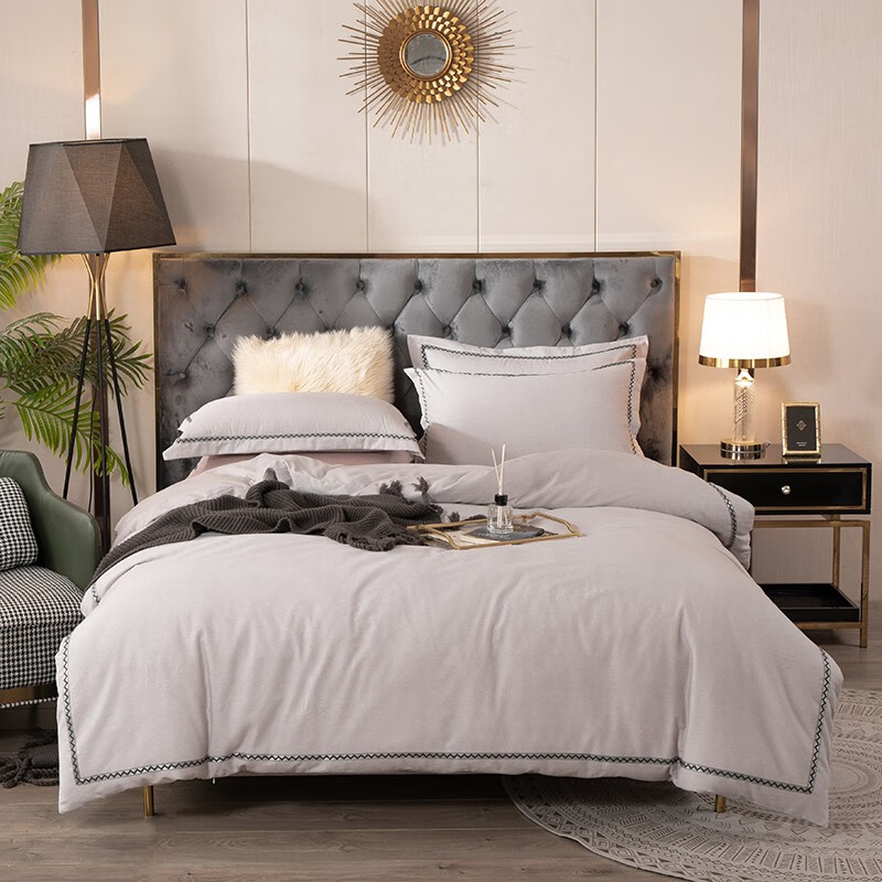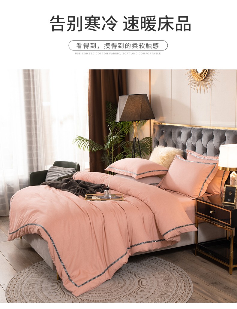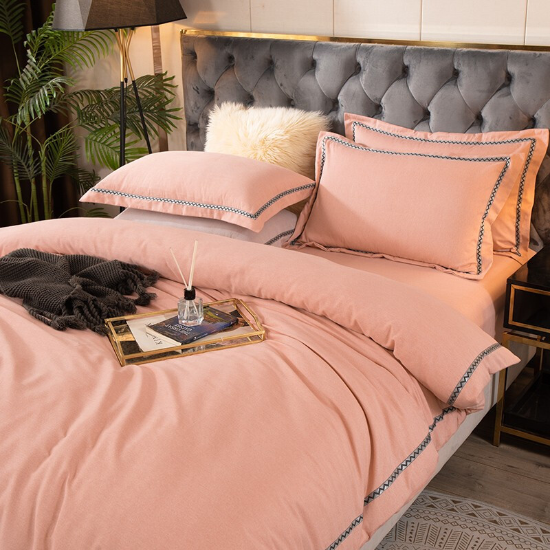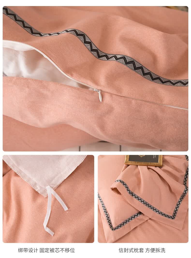 商品名称:金丝莉 朴宿生活全棉磨绒四件套 朴宿风-粉/朴宿风-蓝/朴宿风-灰 被套200×230cm