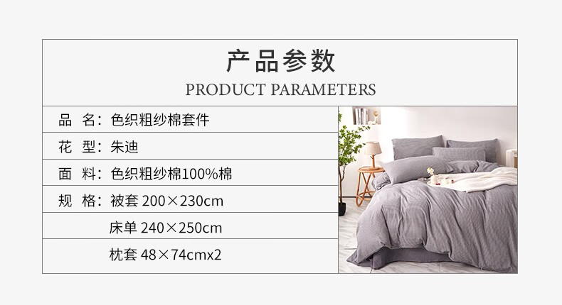商品名称:金丝莉(KINTHERI) 色织粗纱棉套件 朱迪 被套200×230cm